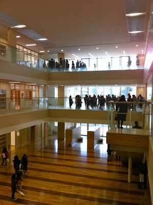 大学の14号館ホールで1時間ほどお話を聞いたあとで、中学校へと移動し、
