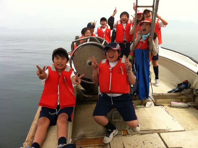今日の活動は、船釣りと漁の見学に分かれて行なわれています。私は漁の見学組。2回網を引き、2回とも鯛が大漁でした!大きな鯵も取れています \(^o^)/