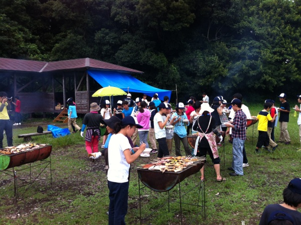 なんてご馳走なのでしょう!子どもたちは、暑さと熱さに負けずに喜んで食べています。