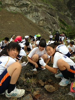 9800万年前!という白亜紀の貴重な地層から取った石を観察して
